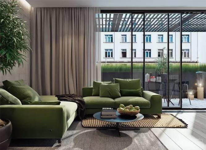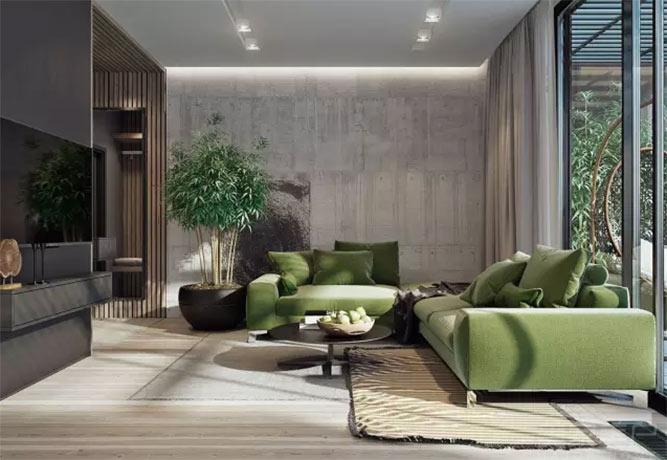 整体极简主义风格表露无疑,通过家居配色的深浅变化,使空间产生了一种流动性,更为灵动欢脱。绿色植物的点缀给整个空间带来了活力和舒适自然的感觉。落地窗透过的自然光,让它们保持生机。