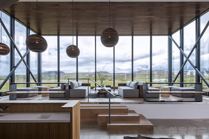 偌大的玻璃落地窗让室外的迷人风景一览无遗,选择木质原生态家装搭配加上现代工业风装潢,给人感觉舒适简单又不乏高级质感,这种风格欧洲尤为普遍。望着夏有苍木,冬有白雪的自然风光,地理位置的优越已然加分太多。