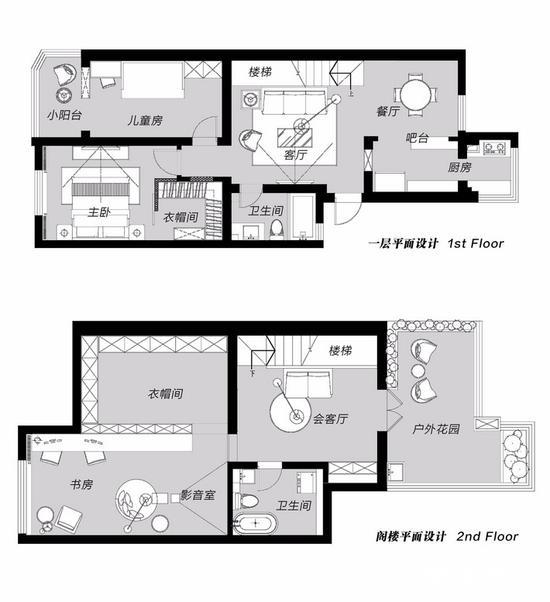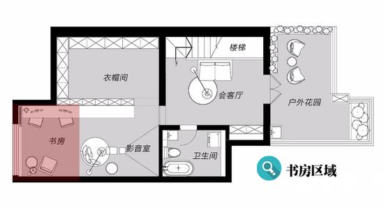 3.二层设有书房、影音室、会客厅等,并带有户外花园。
