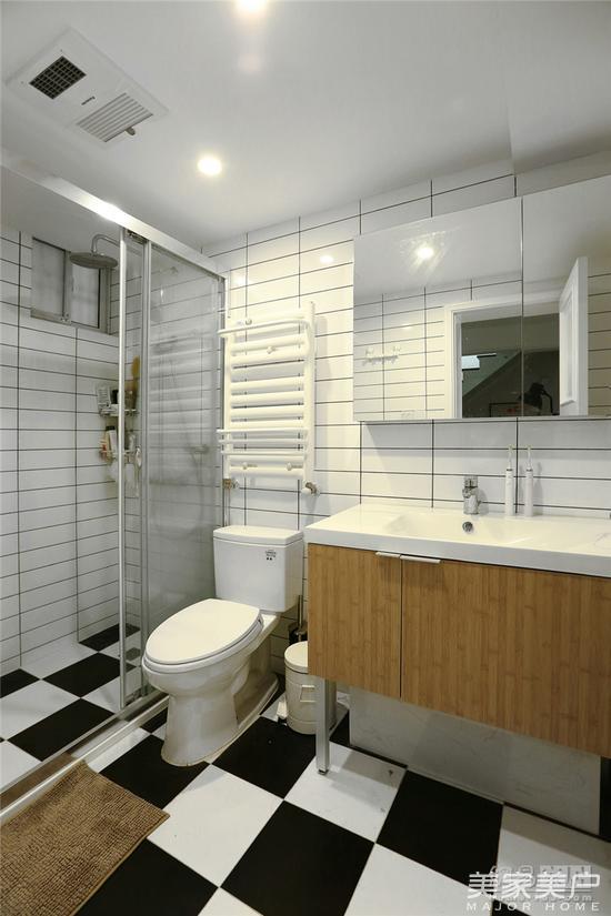 小小的卫生间包含淋浴、洗漱、便溺各种功能,空间划分不能有一丝浪费。