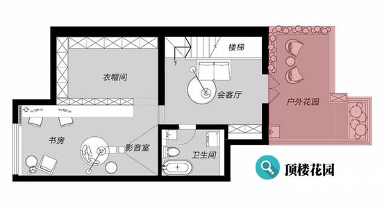 二层会客厅旁有一个20平米的户外花园,为“L”字型。