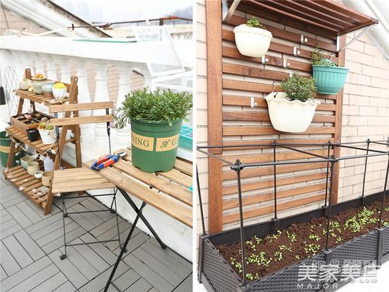 业主喜欢养花、种菜,因此户外花园打造成以休闲、观景为主的小天地。