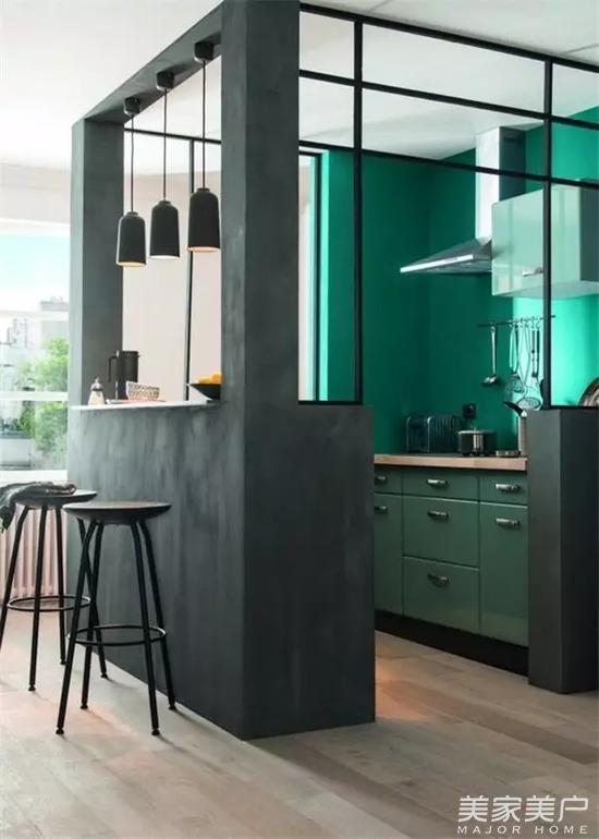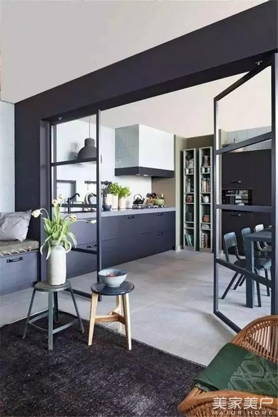还有这种半玻璃半墙的隔断,也是很多家庭装修厨房时的热门选择。