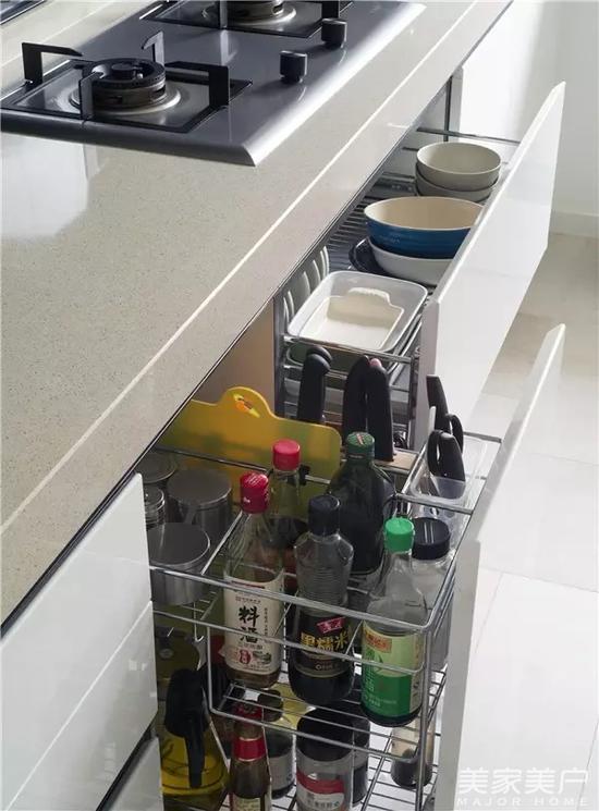 抽屉存放刀叉厨具都是极好的,内部可以使用一些分类隔板,把不同类别的物品分隔开,便于寻找、拿取。