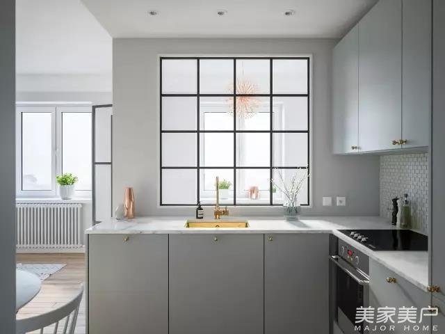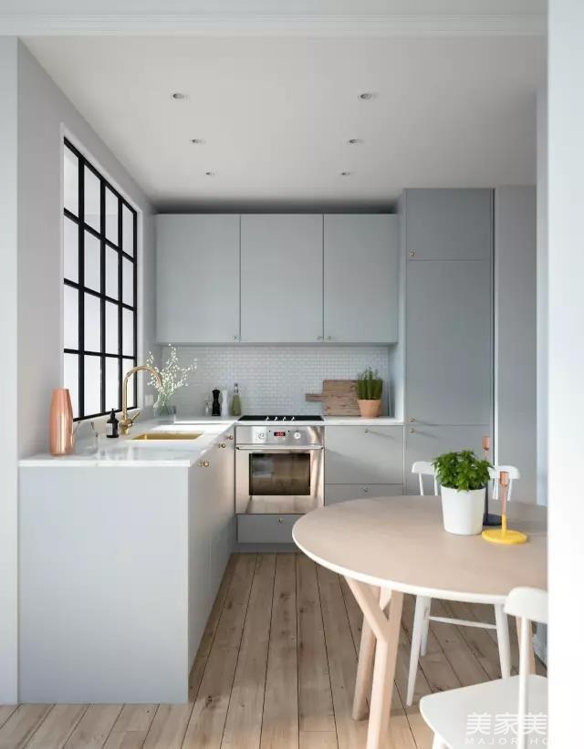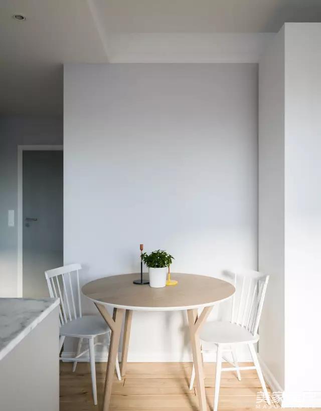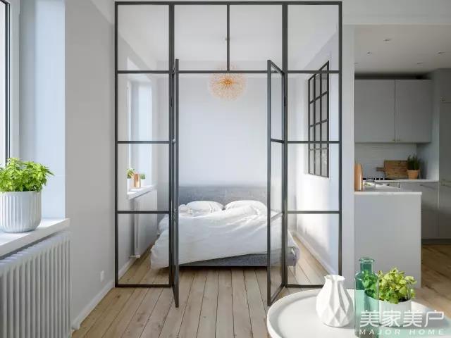 规则的户型但是面积不大,采用极简风格的开放式,浅色在视觉上表现更加的宽敞舒适。封闭的卧室使用玻璃隔开,让光照更加通透。