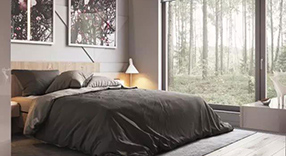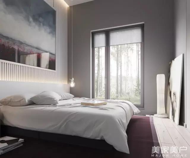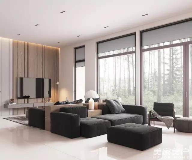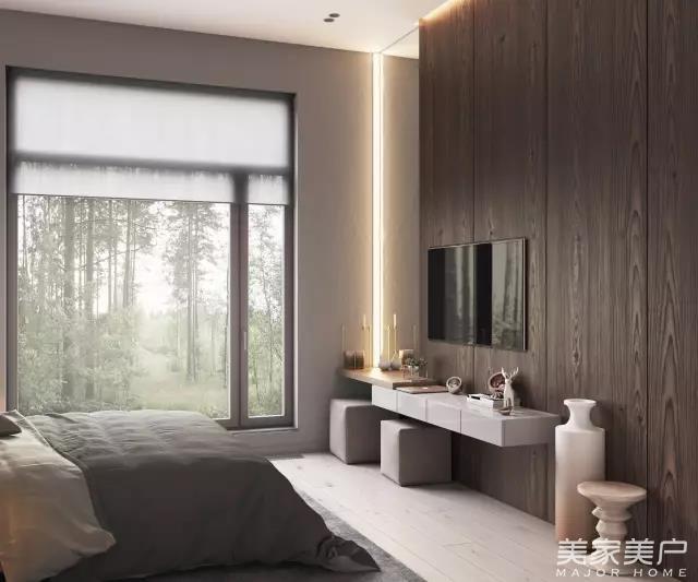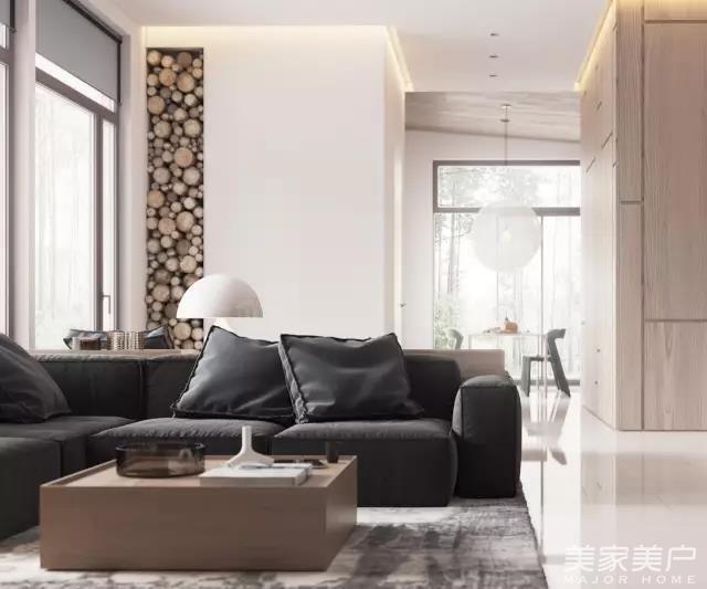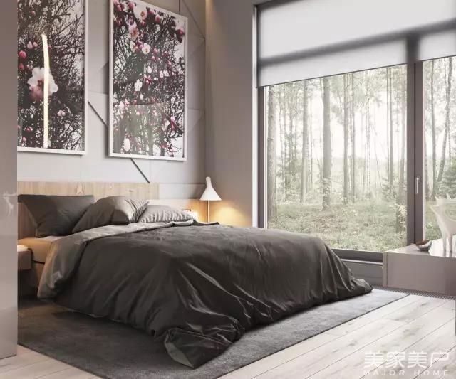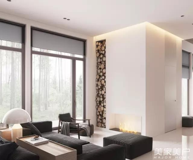 内部没有繁琐拥挤的设置,更多的让空间释放,给人安静悠闲的感觉。大窗户有利于采光和欣赏到夜景,而屋内的色调也与森林统一。