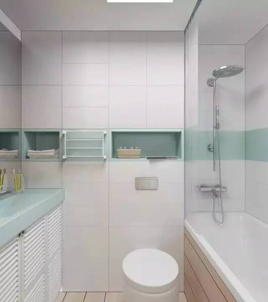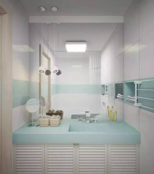 最后看看卫生间,风格完全突变的小清新卫生间,但是小编觉得挺好的。至少这个色彩的搭配非常喜欢。
