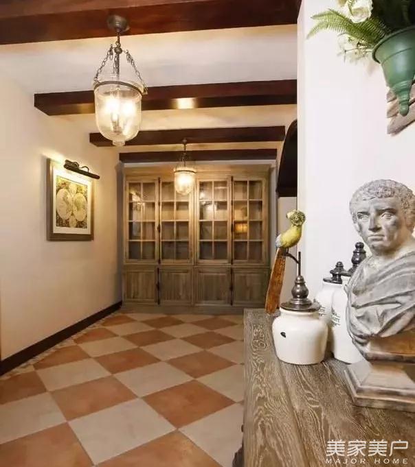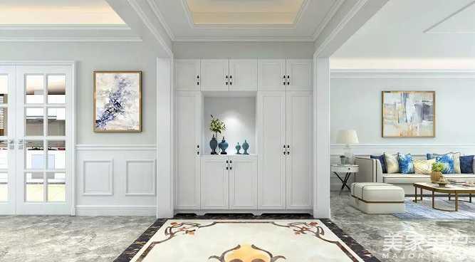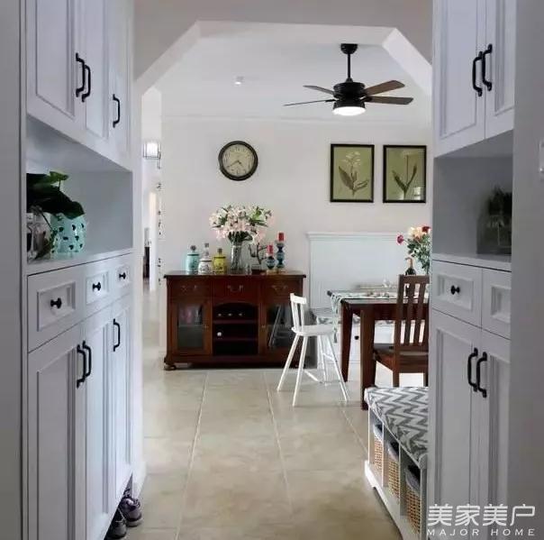 美式是最常见的风格了,浓郁的风格特色,让家变得大气而温馨。美式玄关多使用大型玄关柜,不仅增加了大量的收纳空间,也使空间变得更为大气。