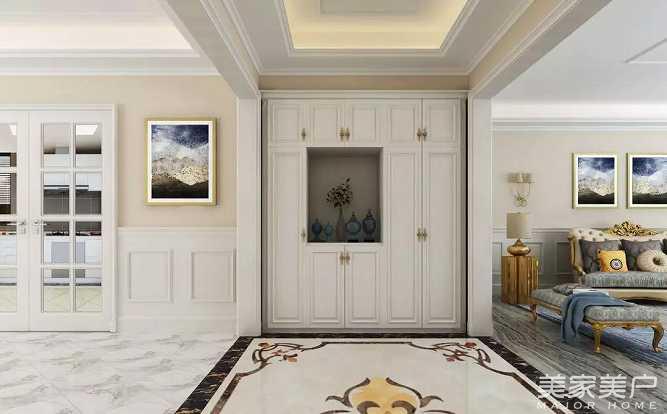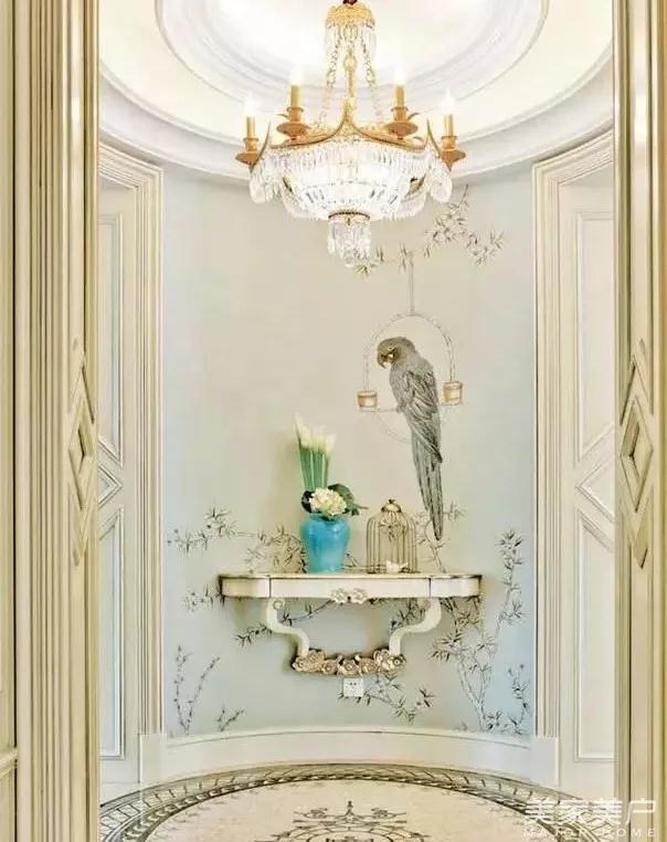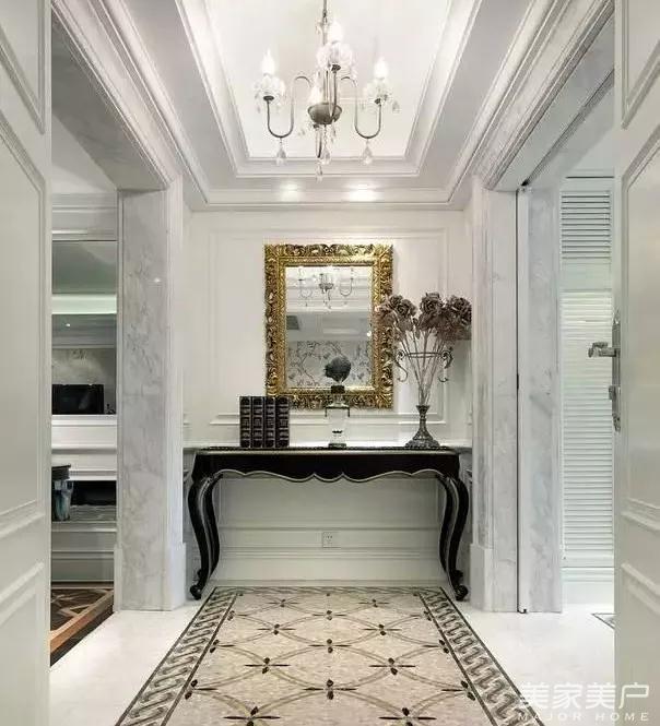 说到简欧风,我们再说说欧式,欧式风格的玄关一般大气富丽,一个造型繁复的玄关几最适宜摆放在这,体现出了浓厚的欧式风情。