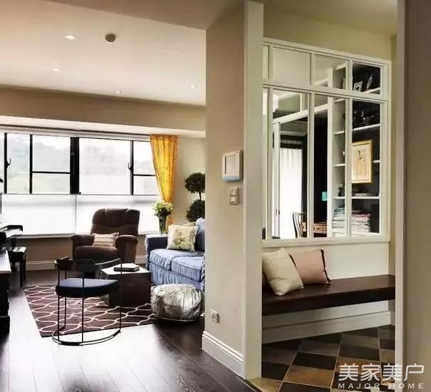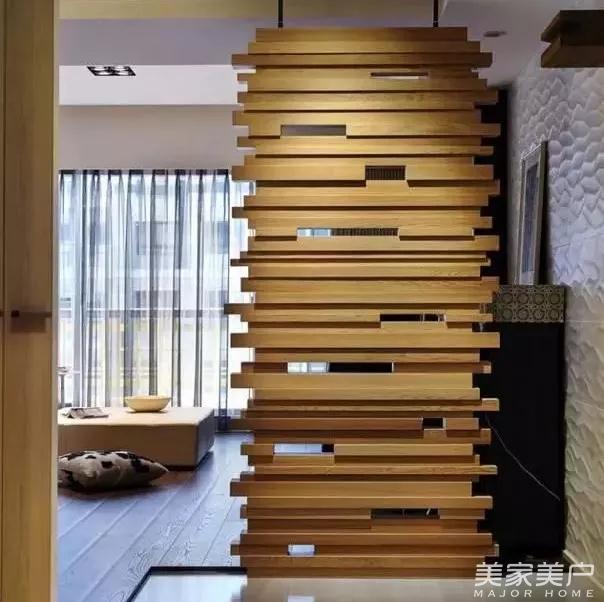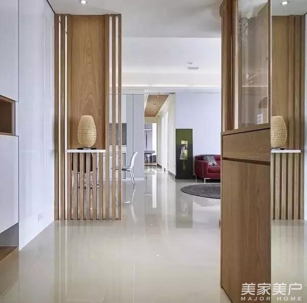 很多人抱怨过自家大门一打开就是客厅,没有玄关,而且私密性也保证不了。如果没有玄关,可以人为地制造出一个隔断性的玄关。比如隔断屏风、大型的置物架都可以尝试。