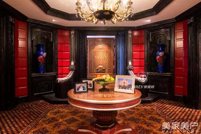 黑红的经典配色,加上银箔的点缀,让空间豪华大气当中透出一丝神秘感,这不仅仅考验设计师的技术,也十分考究木作的精湛工艺。
