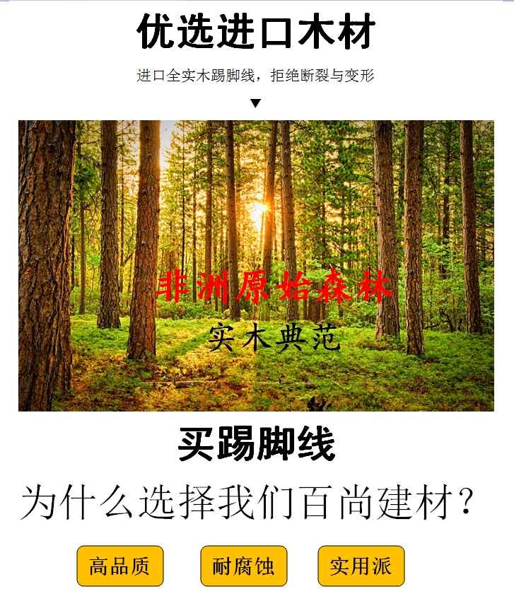 踢脚线的功能可以达到:防潮、防腐、防火、无甲醛、无气味、不易变形,是竹木纤维的材质。
