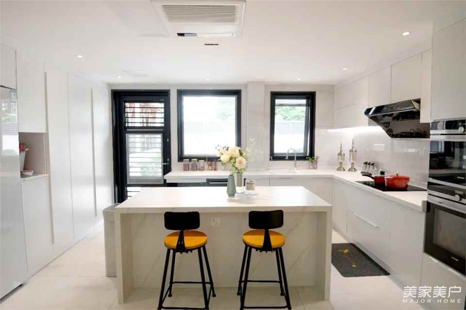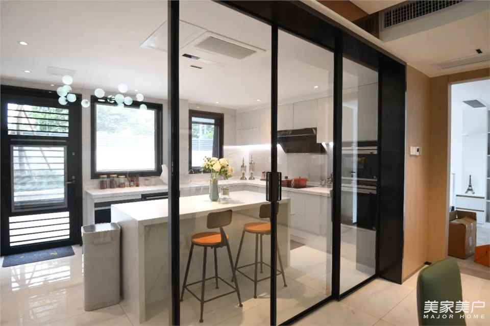 干净利落的精英风,干净利落的空间布局、黑珍珠丝毫不突兀,明亮而又恬静的色彩搭配、清爽明快的设计感觉。