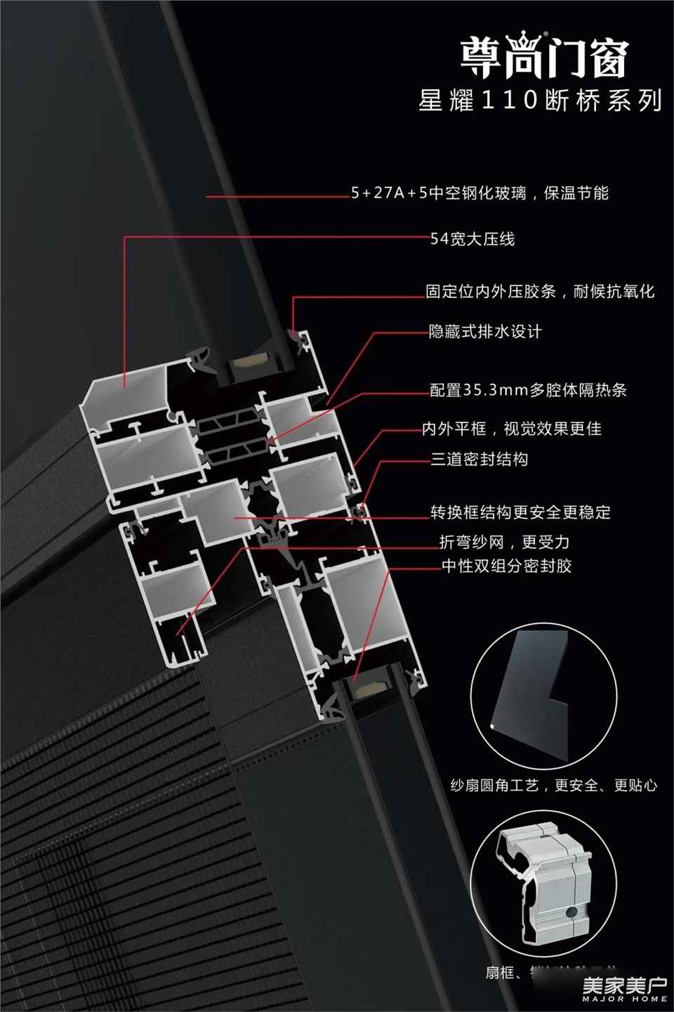星耀系列是一款功能齐全的系统门窗,销钉注胶的一体成型工艺提升了拼角工艺的处理。
