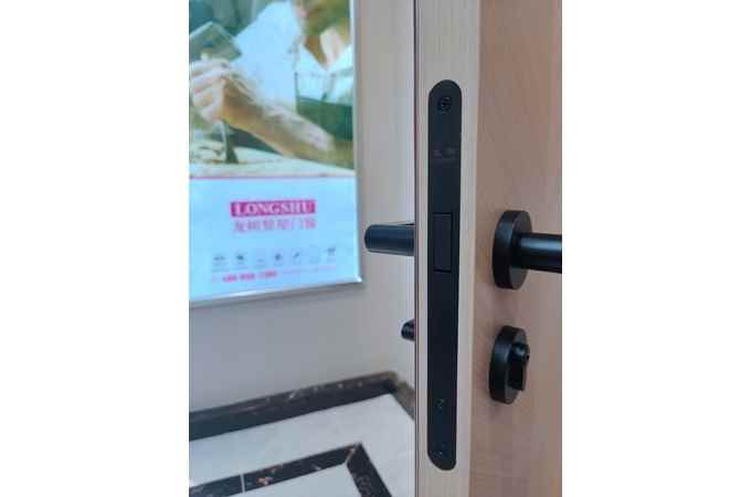 LS-Z02静音木门的门扇侧面和门框都有一个45度开角,并带有磁吸设计,当门关闭的时候,门扇和门框就能刚好契合在一起,形成一个密闭空间,所以保温隔音效果极佳。而且因为密封性能好,在关门过程中就会受到阻力慢慢关闭,而磁吸静音锁到达