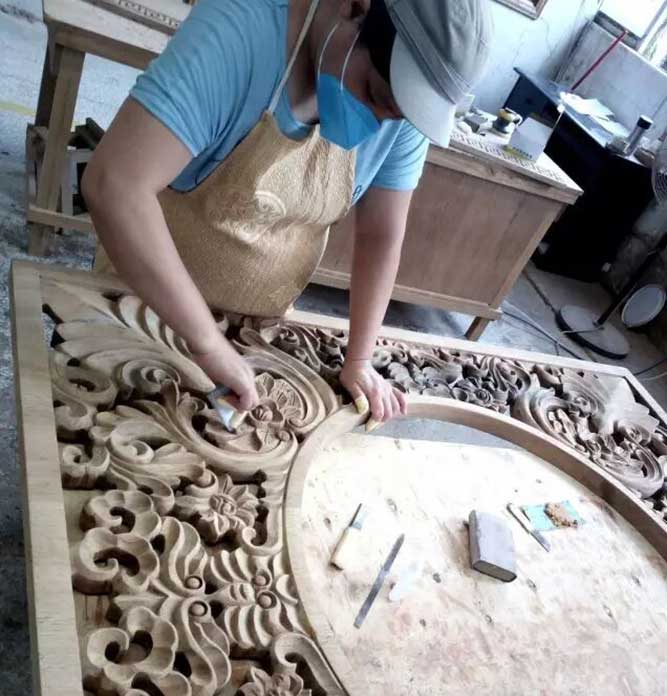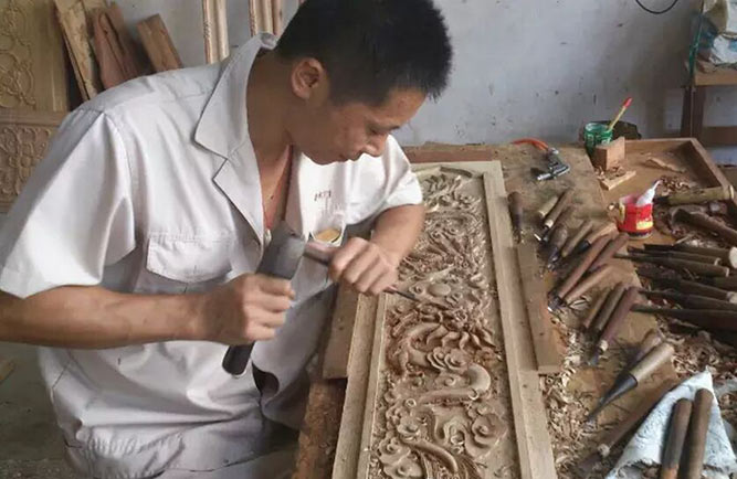 在雕刻工具的运用上,除常用的雕刀、凿、才锤、推刨、斧、锯、锥、锉等外,根据不同情况还须专门制造一些特殊的工具如勾刀、钻子、线锯、各形凿子,锉子等。