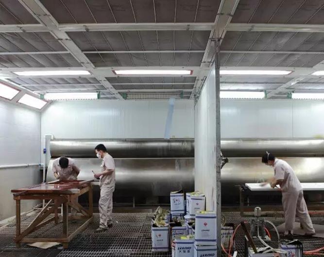 为了保证油漆最好效果,开盛油漆车间每次进行底漆喷完后会进行12小时晾干,公司标准的油漆处理需要进行四底两面,保证油漆面的光滑及稳定。使用的油漆有净味油漆、水性油漆、木蜡油等环保油漆,达到行业健康环保标准。