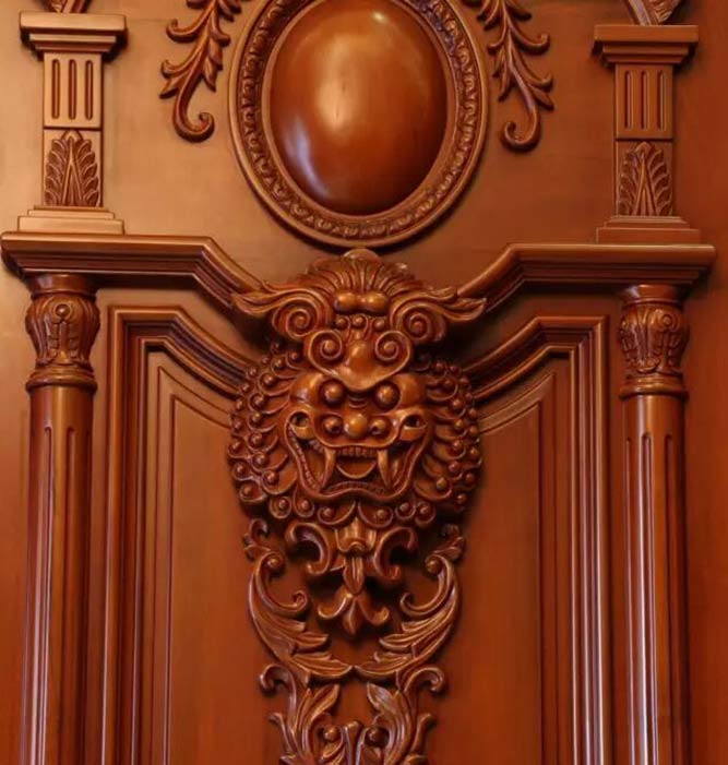 38㎜材料应用:①原木门池板,厚度30-32㎜;②加厚门套线,厚度30-32㎜。