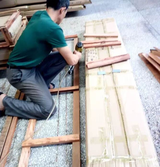 包装时,我们认真检查每个产品的细节,清理表面颗粒,异型整装产品通过打木架固定造型,确保运输安全无损。