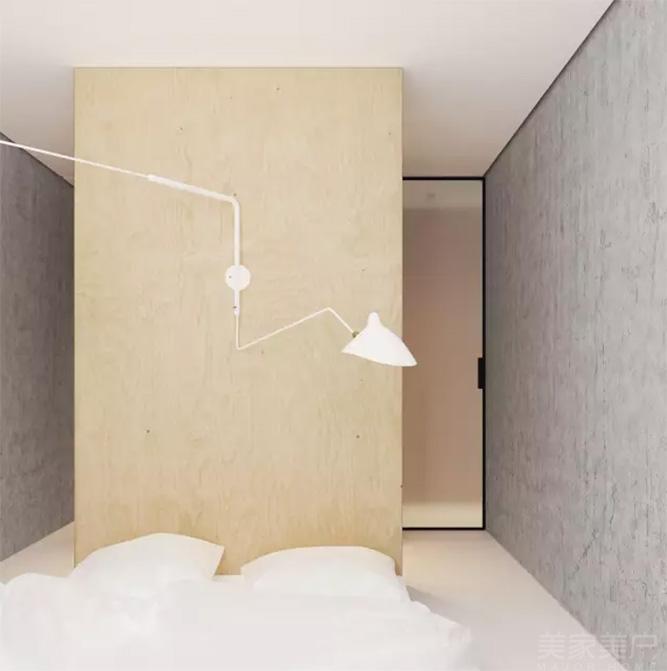 用六种材质搭配 - 木材、水泥、大理石、瓷砖和两种复合材质,每个房间都是不同的组合。为了节省空间,所有的房间都使用推拉门。餐桌上和卧室的白色灯具在房间中十分亮眼。
