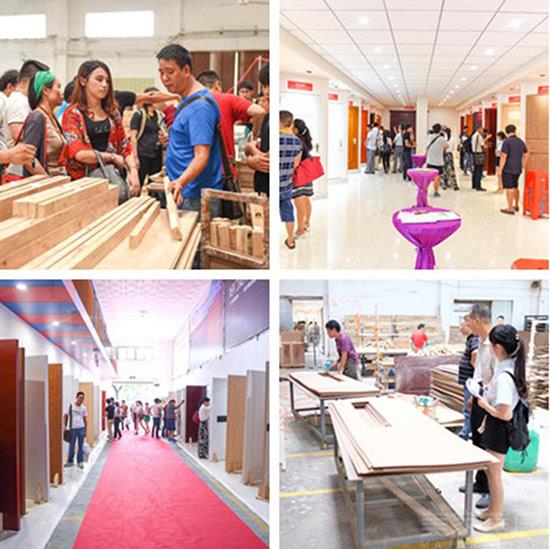和兴赢木业厂长焦权明先生和五金销售部经理刘健先生为大家现场推广新品木门和速装锁。
