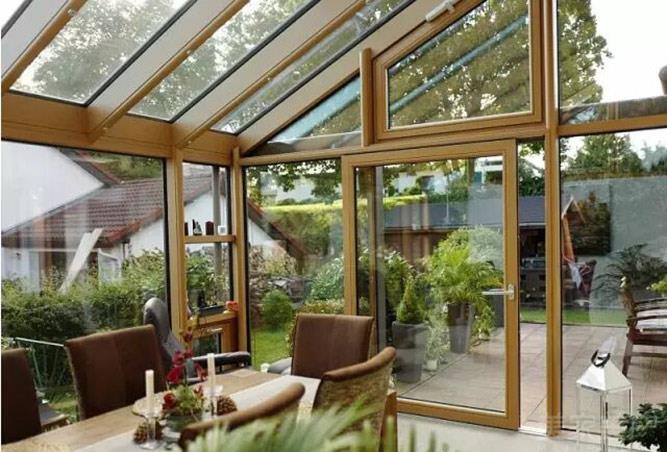 铝木阳光房最早起源于德国,这种节能环保的智能化建筑,具有优越的保温隔热、防水防紫外线的功能。其室内侧采用优质的实木,贴近自然的木结构给人更舒适的亲和感;室外则是优质的铝合金材质,可根据个人喜好更换色彩,带来更加前卫、时尚的建筑风格,尽情享受高品质的生活。