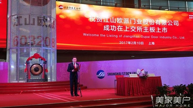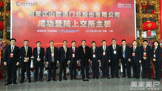 2月10日,江山欧派门业股份有限公司登陆A股。股票简称“江山欧派”,股票代码“603208”,每股发行价24.83元/股,本次A股公开发行的股票数量2021万股,发行完成后总股本8081.61万股。据悉,江山欧派是全国第一家上市的专业木门制造企业。