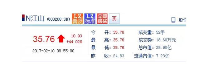 上市首日,江山欧派迎开门红,开盘秒涨44.02%,报收35.76元/股。