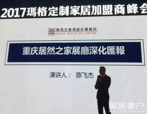 2016年底,玛格与陈飞杰香港设计事务所达成合作,双方团队经过沟通协调,对玛格重庆北环红星店的展厅形象进行了更新升级。在本次大会上,陈飞杰老师通过上样产品分析、店面设计理念、平面方案、灯光设计等方面对展厅形象升级进行了介绍,他表示相信通过此次的展厅形象设计,在提升业绩的同时也会进一步提高玛格的品牌影响力。