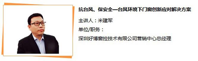 HOPO好博窗控营销中心总经理米建军先生,将以《抗台风、保安全——台风环境下门窗创新应对解决方案》为主题,携新思想、新产品、新技术与您相约“第23届全国铝门窗幕墙新产品博览会”,2017.3.11我们不见不散!