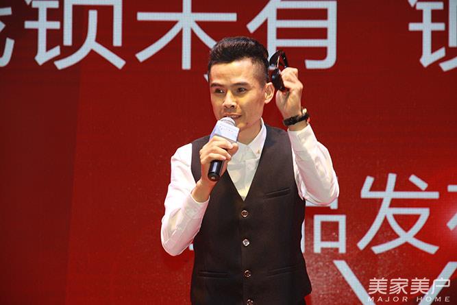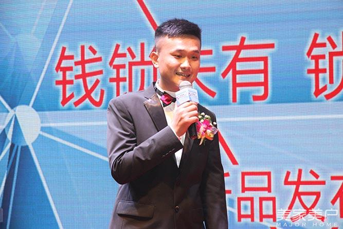 广州智狼团企业管理咨询有限公司董事长郑博文就当今市场环境下,就“如何把握财富的大趋势、如何做品牌,以及在智能锁的发展趋势下,如何把握、携手并做好罗曼斯全自动智能锁品牌”的主题演讲。
