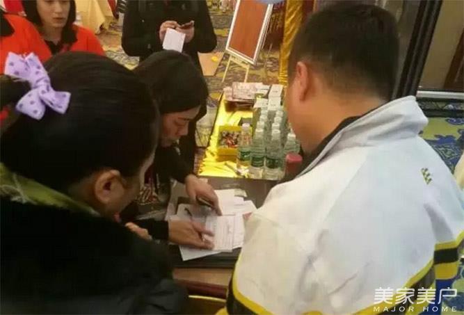 整个新帝豪展位被数不清的业主给“攻陷”了,订单像暴雨地下。新会专卖店潘总写订单,收定金,忙个不停。