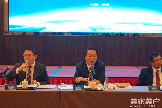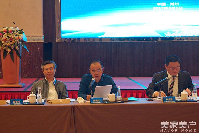 3月5日,全国工商联家具装饰业商会2017年第一次会长扩大会议在常州市现代传媒中心万豪酒店隆重举行。全国工商联家具装饰业商会会长丁佐宏,执行会长:金海马集团总裁翟栋梁、张传喜、欧派家居集团董事长姚良松、敏华控股集团董事会主席黄敏利、顾家家居集团董事长顾江生、喜盈门集团副总裁许惊鸿、四家家具总裁何志雄、康耐登家居集团董事长刘永康、龙树集团董事长邓树生,商会监事长、华鹤家居集团董事长吴雪松,副监事长、东莞金海马家具有限公司董事长傅小燕,广东省门业协会秘书长徐生,浙江省门业协会秘书长李进,河南省定制家居协会执行会长董振以及行业内嘉宾逾150人出席此次会议。