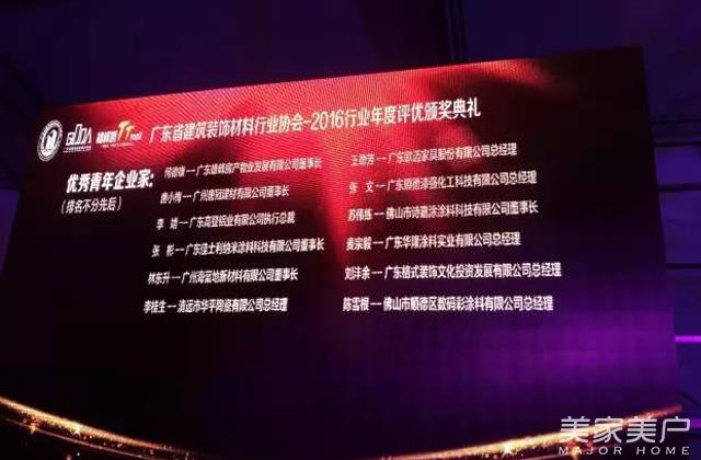 为表彰行业先进,树立广东品牌,推动科技创新,助力稳增长、调结构、促改革、惠民生,凝聚建材力量,建设幸福广东,共筑中国梦,根据《关于开展广东省建筑装饰材料行业 2016年度评优工作的通知》的精神要求,2016 年度评优活动共收到 336 家企业报名参评,经过本协会秘书处的初步审核,以及组织开展实地抽查、专家评审会、设计师评审会、综合复审等选拨程序,最终评出优秀青年企业家 13 家、技术创新奖22 家,设计师最喜爱的品牌 11 家、诚信经销商 45家、优秀企业 28 家 ,其中广东漆强化工是优秀企业家其中之一。