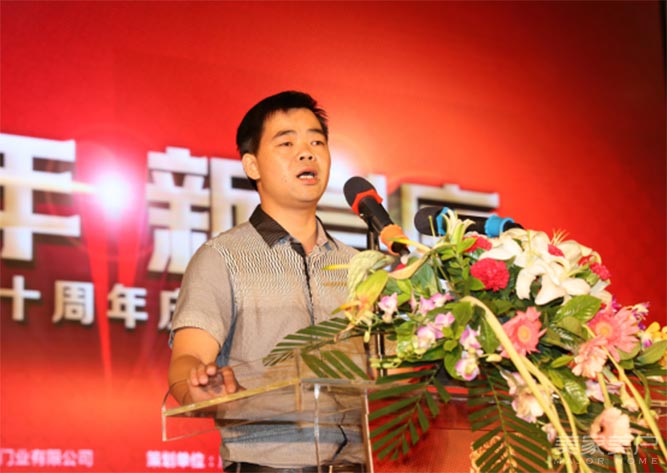 晚宴上,广东省门业协会会长关润开代表了广东省门业协会向皇庭金门致以最热烈的祝贺,他说:“皇庭金门在过去十年一直注重产品研发和品牌建设,定位高端市场,赢得了市场,赢得了口碑,成为中国铝门窗优秀企业之一,并祝愿皇庭金门越来越强大,广东门业也会在寒冬中发展的越来越好”。广东省门业协会锁具五金专委会会长陈鸿填、广东省门业协会秘书长徐生陆续致辞祝贺皇庭金门在未来十年迈向更高的台阶。