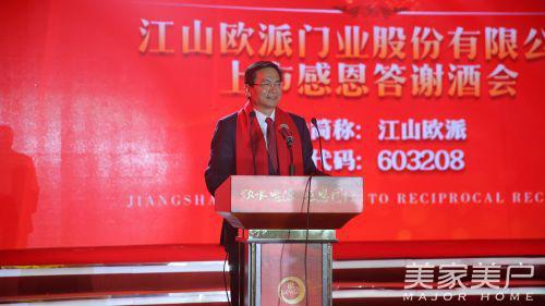 江山欧派木门用八年的努力终于成功上市,这八年是艰难的八年,是奋斗的八年,更是成长的八年,江山欧派人不曾放弃,更不曾退缩。今天江山欧派需要感谢的人太多太多,我们也希望今天的感恩答谢晚宴能够将江山欧派感恩的心传递,传递到全国每一个有江山欧派的角落,正如晚宴的主题那般,饮水思源,感恩同行。只有怀着一颗感恩的心,江山欧派才能在未来木门市场的征战之路上越走越远,创造更多辉煌。