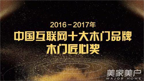 ——欧铂尼整体木门荣获“2016-2017年中国互联网十大木门品牌——木门匠心奖”