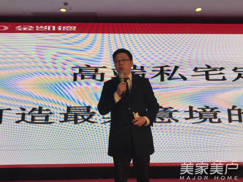 接下来,金凯德集团各事业部经理纷纷登台,带来集成新品发布。非标门销售总监杨飞翔率先出场,带来金凯德非标门的最新产品发布。在非标门领域,金凯德旨在通过高端私宅定制,打造最具意境的中国大门。