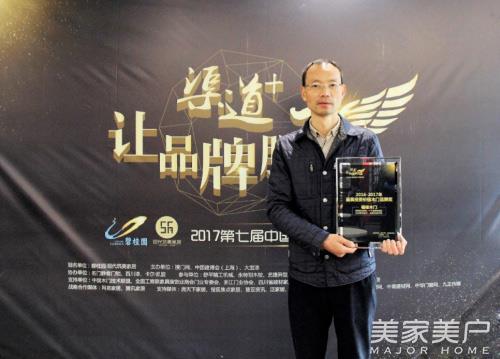 福缘木门董事长周小军持“最具投资价值木门品牌奖”奖牌留影