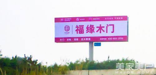 除产品品质上的保证,福缘木门还投入大量资金,加大品牌宣传力度。2017年元月1日,福缘木门高速路牌广告全面上线,由成都向外辐射的成乐高速、成绵高速、成绵高速公路复线、成南高速、成雅高速、成渝高速、成自泸赤高速,全面树立起巨幅高炮广告牌,开始招商+品牌全面发力。