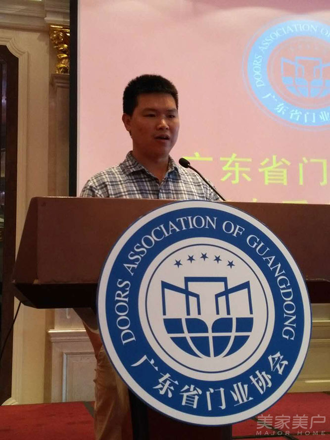 广东省门业协会钢质门专委会首任会长吴奋谋在会上致辞。他说:“钢质门行业很大,企业很小。金大田也在思考如何把钢质门行业做的更好,相信钢质门专委会的成立定能推动更多企业的发展。”