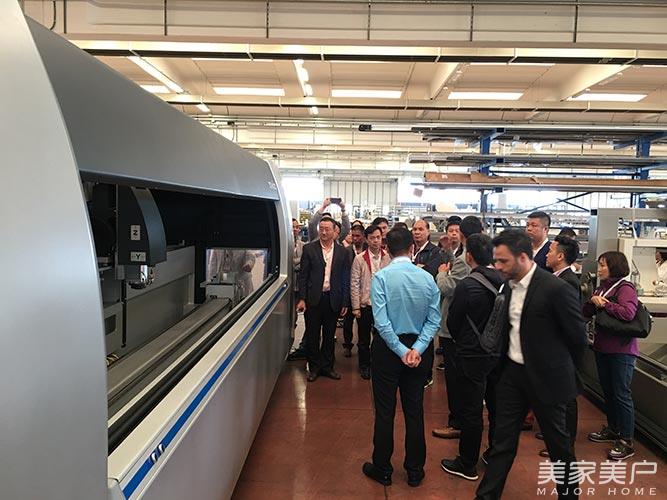 在意大利,考察团一行参观了意大利知名设备制造商Mecal。在Mecal公司,考察团一行受到Mecal公司高层领导的热情接待。在Mecal公司高层领导的陪同下,考察人员参观了Mecal生产车间、产品展厅等,并且就门窗设备方面的话题与Mecal公司Valter Meschini 瓦尔特?梅斯基尼等相关负责人进行了详细的交流与沟通。参观Mecal公司后,考察团一行对Mecal的设计与开发整套定制设备产品系列的生产、技能与专业水平颇为赞赏。据悉,Mecal公司由埃尼奥?卡维扎列于1978年创立,总部位于意大利北部帕维亚省的弗拉斯卡洛罗市。Mecal现有150名员工,公司占地6万平方米。Mecal是一家可以提供标准化和高度定制化解决方案的企业。Mecal制造与供应的加工设备和系统,适用于任何使用轻合金挤压材料、PVC挤压材料、空心型钢等产品。Mecal是意大利唯一能从原材料环节开始独立生产设备成品的制造商,在世界各地均设有零售商和分销商。在中国,坚美、华昌、广铝等知名铝材企业都用到了Mecal公司生产的相关设备。