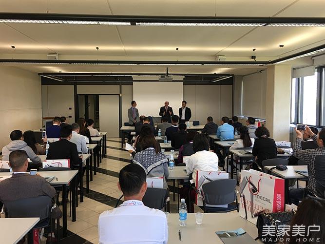 考察期间,考察团一行还赴米兰新国际展览中心参观了以“遇见米兰,预见未来”为主题的第56届米兰国际家具展。作为世界家具与家居设计的顶尖展会,聚集着来自38个国家的2000家参展商,来自全球的顶尖设计作品在此首秀风采。米兰国际家具展不仅是一次“脑洞大开”的家具展示,更是一场齐聚全球室内设计师的盛会。此次展会让考察人员大饱眼福,看到了未来家居行业的发展趋势。广东省门业协会会长、广东润成创展木业董事长关润开在参观米兰家具展后表示:“此次米兰之行,琳琅满目的世界顶尖设计给我们演绎了一场全球顶级的时尚盛宴。米兰展超前的设计思维让我为之震撼......”。米兰家具展不仅让考察团感受到设计创新带来的视觉惊喜与思维冲击,了解到全世界家具、家居、建筑等的风向动态,更让考察团一行领略到全球最新的设计潮流与启发,这些新的设计思维必将促使投入新一轮门窗和家居产品的研发中,给国内消费者带来更好更适合的时尚家居生活体验。