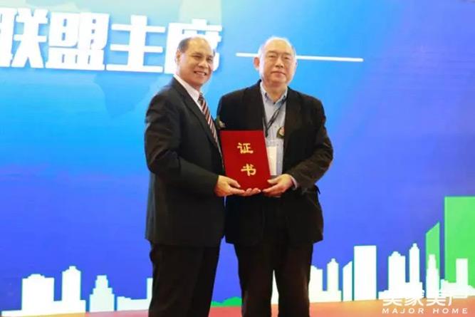 中国林产工业协会秘书长石峰被授予“中国木门窗行业绿色发展协作联盟首席主席”证书