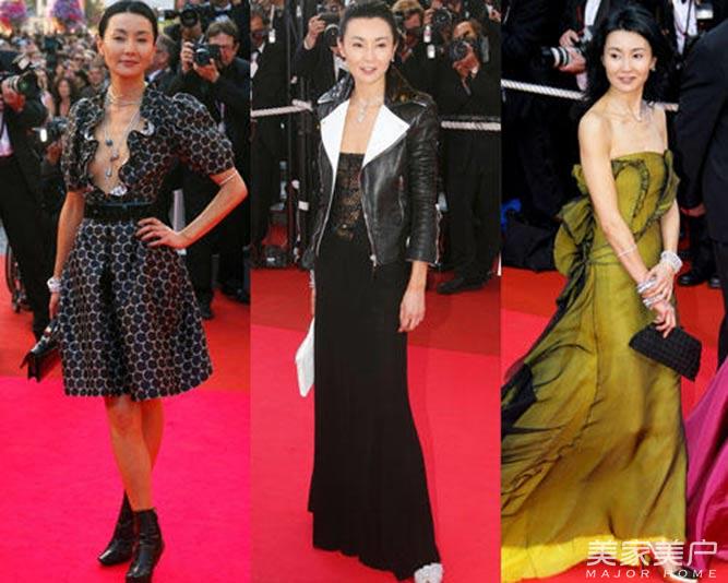 凭借《卧虎藏龙》首次亮相戛纳的章子怡,之后基本每年都有出现在这个电影盛典。《艺伎回忆录》、《2046》、《十面埋伏》这几部电影都让她在这发光发热,拿奖的同时也受到了很多国际大牌的青睐,服装的赞助源源不断。“国际章”的风格大气中带精致,有时前卫却也不失亲切。