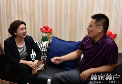 霍尔茨木门总经理赵崇联与到访的搜门网CEO石兴女士交谈