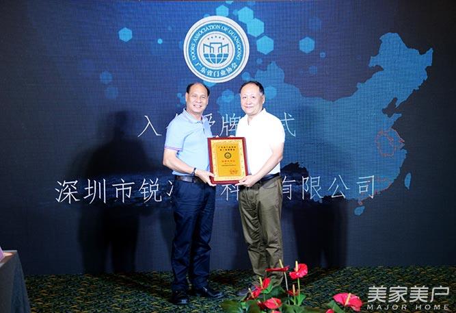 关润开为深圳市锐凌芯科技有限公司授予“广东省门业协会副会长单位”荣誉牌