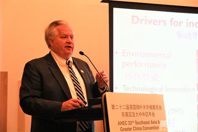有鉴于中国政府治理环境、提倡低碳环保的决心,麦克·斯诺对中国市场在未来的表现充满了信心。美国阔叶木是在碳存储方面有着出色的优势,AHEC曾发布过《美国阔叶木环境形象(AHEPS)》,分析美国阔叶木的可持续发展和应用。今年,麦克·斯诺着重讨论了如何通过科学管理和广泛应用美国阔叶木,实现固碳、减排,并对木业的发展潮流提出了新的思路。麦克·斯诺已经带领和陪伴AHEC走过了17年,见证了中国对美国阔叶木木材进口量直线上升的17年,而这个趋势还将保持。