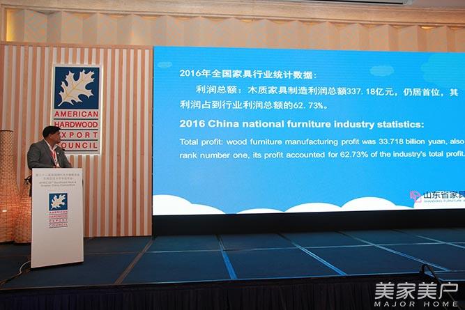 美国驻广州农业贸易处副主任王威立,美国阔叶木外销委员会会长戴夫·布拉姆利奇,美国阔叶木外销委员会行政总监麦克·斯诺、美国阔叶木外销委员会东南亚及大中华区处长陈席镇,美国硬木板材协会行政总监罗娜·克里斯蒂,山东省家具协会会长、烟台吉斯集团公司总裁孙杰,北美硬木板材协会首席检测员达纳·施佩塞特,AA Corporation Ltd销售与市场总监Aaron Leri和SOM中国区总监周学望等出席年会并做了精彩致辞与演讲。嘉宾们分别从美国阔叶木全球出口展望、可持续发展的特色、板材分等、应用技术及室内设计案例等方面出发,向业界提供了关于美国阔叶木的最新资讯、商业机会及其无限的应用空间。