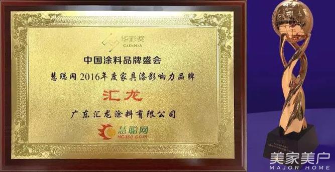 汇龙涂料获 “2016年度家具漆影响力品牌”殊荣